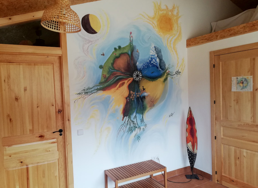 No faltó la parte artística, empezando por el agradecimiento a Annabel, una voluntaria alemana que ha pasado hace poco por aquí, por el precioso mural del recibidor, y continuando con lecturas, poemas y canción. Tampoco faltó un momento espiritual en el que, manos entrelazadas, guardamos silencio para armonizar todos nuestros buenos deseos para este espacio.